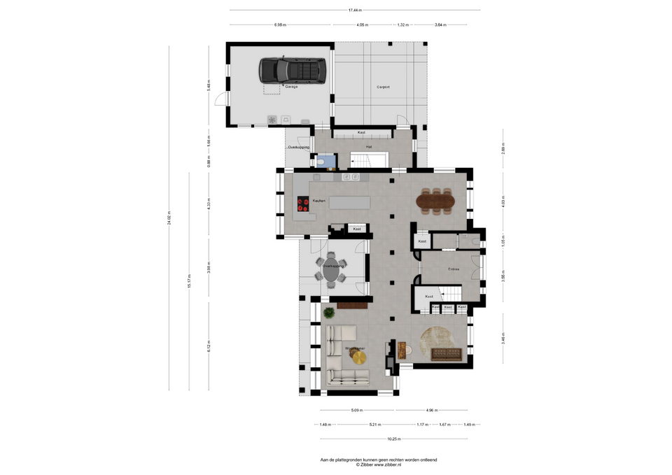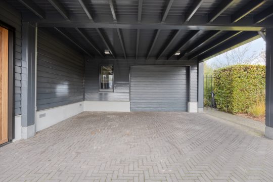 Zo bereik jij het huis direct bij het parkeren onder de carport. De garage is extra breed en voorzien van een elektrische segmentdeur, bergzolder, de unit van het centraal stofzuigsysteem en een tuindeur.