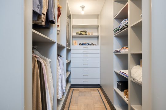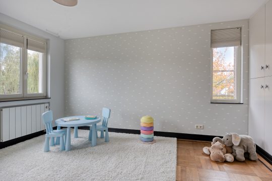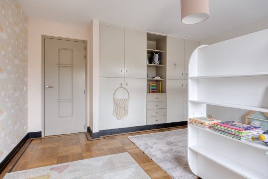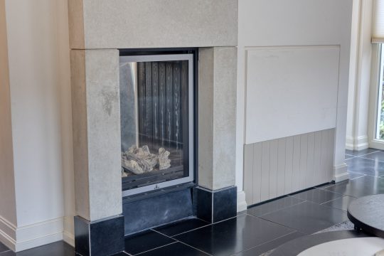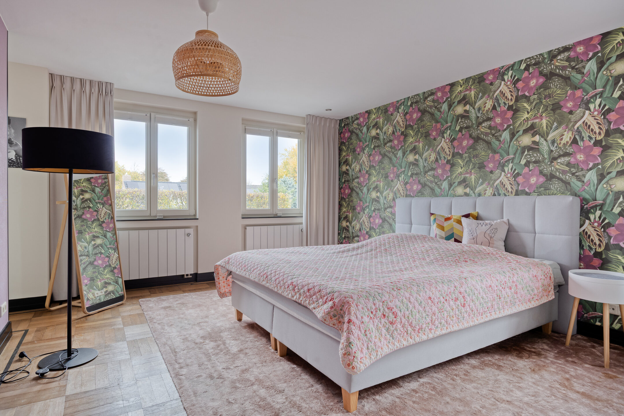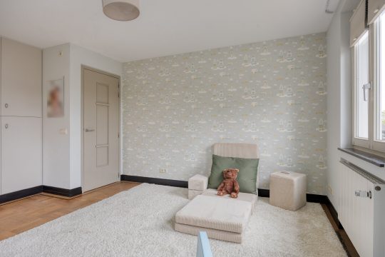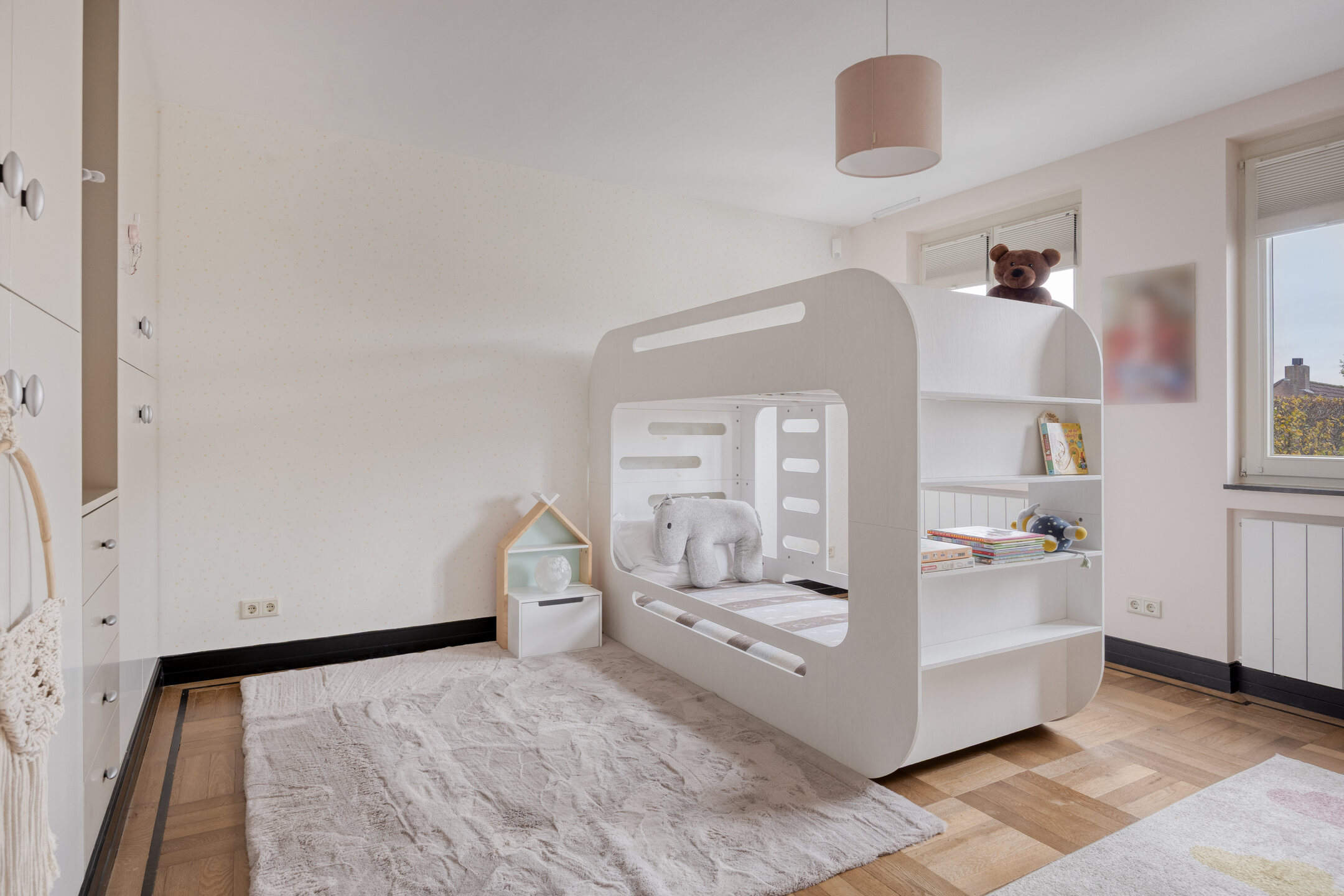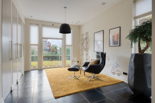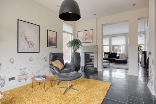 In de living komt de kenmerkende Hertroijs-stijl volledig tot zijn recht. De symmetrische lay-out met de verschillende woonfuncties aan weerszijden van de hal creëert een prettige balans tussen openheid en geborgenheid. De tuingerichte zithoek is royaal opgezet en wordt subtiel gescheiden van de aangrenzende leefruimte door een doorkijkgashaard — een sfeervol element dat verbinding én intimiteit brengt. Deze tweede leefruimte is veelzijdig in te richten als werk-, tv- of speelkamer en is voorzien van een stijlvolle maatwerkkastenwand met inloopkast. Details als de akoestische suède wand en geïntegreerde verlichting versterken het gevoel van luxe en comfort.