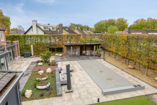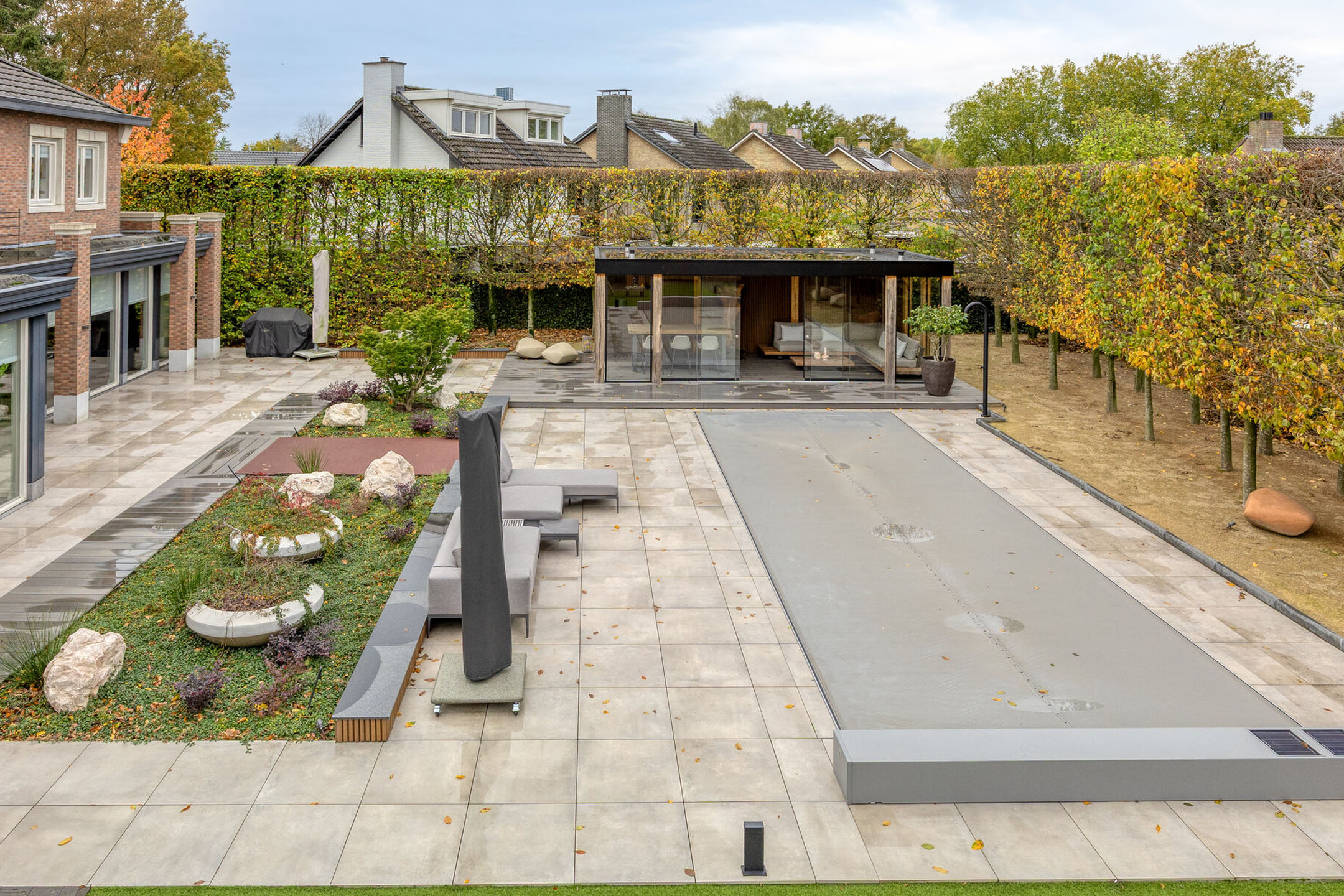 En dan buitenruimtes…Deze sluiten naadloos aan bij de hoogwaardige afwerking en uitstraling van de woning. Sinds de metamorfose van de tuin in 2023 bieden het verwarmde zwembad en sfeervolle poolhouse de ultieme buitenbeleving. Samen met het tuinontwerp met grote terrastegels, een gazon, overdekt terras met buitenhaard grenzend aan de woning, fraaie borders en de privacybiedende haag van leilinden een mooi geheel. Het zwembad is voorzien van een Coverseal dat duurzaamheid, veiligheid en gebruiksgemak biedt. In de royale houten tuinberging (2023) vind je de installaties van het zwembad en veel bergruimte.